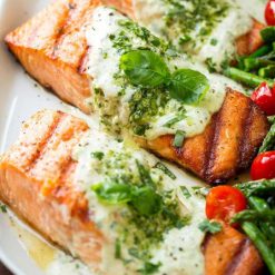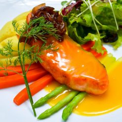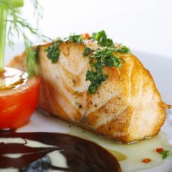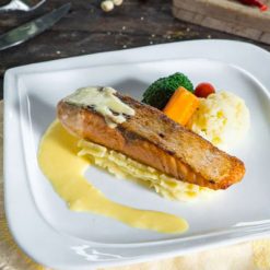 CÁ HỒI NƯỚNG SỐT KEM RƯỢU VANG TRẮNG